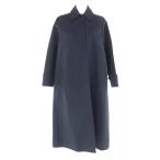 極美品★Salvatore Ferragamo サルヴァトーレフェラガモ ウール混 比翼仕立て ロング丈 コート ネイビー 38 ハンガー付き 伊製 正規品