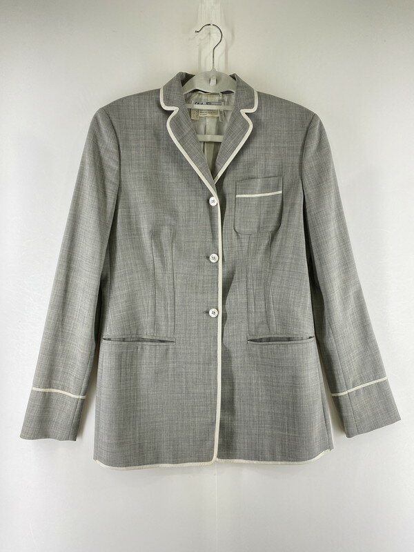 【中古】【レディース】SALVATORE FERRAGAMO TAILOREDJACKET 136180843 サルヴァトーレ フェラガモ 3Bラペルド テーラードジャケット ライトアウター サイズ:US 8 カラー:グレー 灰 万代Net店 168-230803-yn-15-min
