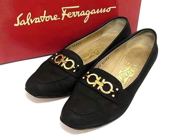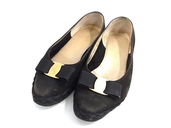 Salvatore Ferragamo フェラガモ ヴァラリボン スエード ヒール パンプス サイズ35 1/2(約22.5cm) 靴 シューズ ブラック系 DF4719