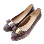サルヴァトーレフェラガモ Salvatore Ferragamo ヴァラ パンプス ラウンドトゥ ローヒール レザー リボン ロゴ 6.5 茶 ブラウン 黒