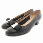 サルヴァトーレフェラガモ Salvatore Ferragamo ヴァラ パンプス ローヒール ラウンドトゥ リボン 4 21.5cm 黒 ブラック