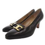 サルヴァトーレフェラガモ Salvatore Ferragamo パンプス シューズ ローヒール ベルト レザー 6 23.0cm 黒 ブラック 0126 IBO87