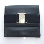 サルヴァトーレフェラガモ Salvatore Ferragamo 財布 レザー 本革 黒 ブラック 無地 リボン装飾 バックルデザイン /SX ■ECD001
