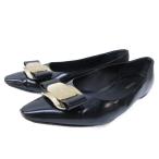 サルヴァトーレフェラガモ Salvatore Ferragamo フラットパンプス ヴァラ ポインテッドトゥ ロゴプレート 黒 ブラック 6 約24cm IBO79