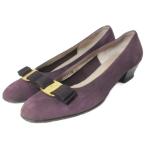 サルヴァトーレフェラガモ BOUTIQUE ヴァラ スエード パンプス チャンキーヒール 靴 7.5B 約25cm 紫 パープル IBO92 /X レディース