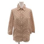 サルヴァトーレフェラガモ Salvatore Ferragamo シャツ ブラウス ガンチーニ柄 七分袖 総柄 シェルボタン コットン 42 ベージュ /FF