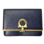 サルヴァトーレフェラガモ Salvatore Ferragamo ガンチーニ カードケース 名刺入れ 二つ折り ネイビー レディース