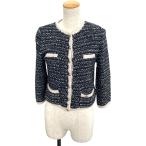 新品同様 FOXEY フォクシー Petit Triomphe ツイード ジャケット レディース ネイビー 38 39873