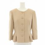 フォクシー FOXEY ノーカラージャケット アウター ペプラム ハンガー付き 40 ベージュ 35355 /YT レディース
