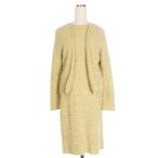 【中古】フォクシーブティック FOXEY BOUTIQUE ノーカラージャケット 七分袖 ツイード リネン混 黄緑 42 *E762 レディース 【ベクトル 古着】 210908