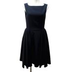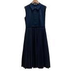 フォクシーニューヨーク FOXEY NEW YORK ノースリーブワンピース ひざ丈 バックプリーツ 40 紺 ネイビー /JS ■GY06 レディース