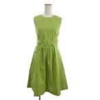 フォクシーニューヨーク ボリュームリボン ワンピース ひざ丈 ノースリーブ フレア 黄緑 ライトグリーン 38 ■TC レディース