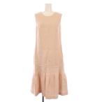 フォクシー FOXEY DROPPED WAIST PINTUCK DRESS ノースリーブワンピース ロング リネン 38 ピンクベージュ 37925 /KH レディース