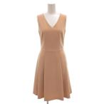 新品同様 FOXEY NEWYORK フォクシー ニューヨーク ストレッチ ワンピース ドレス 膝丈 フレア ノースリーブ パーティ ベージュ 38 レディース 古着 中古