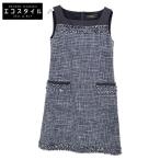 FOXEY フォクシー 35611 ネイビー ツイード×ナイロン ワンピース ネイビー 38 ワンピース コットン レディース 中古