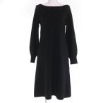 美品☆FOXEY フォクシー 39945 ウール100% ボートネック 長袖ニット ワンピース ブラック 38 日本製 正規品 レディース