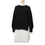 美品 クリーニング済 ADEAM アディアム フォクシー ニットレイヤード プリーツ シャツワンピース 42519 サイズS ネイビー レディース 古着 中古