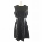 フォクシーニューヨーク FOXEY NEW YORK ワンピース ひざ丈 ノースリーブ フェイクレザー 切替 40 黒 ブラック 35553 /AN48 レディース