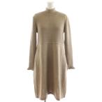 フォクシー ブティック FOXEY BOUTIQUE ニットワンピース ミモレ ロング 長袖 ハイネック リブ ウール 40 ベージュ 9028-AN9836