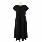 フォクシーニューヨーク デイリージャージードレス フレアワンピース ミモレ ロング 半袖 クルーネック ストレッチ 無地 切替 40 黒