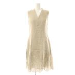 フォクシー FOXEY ワンピース 膝丈 ノースリーブ 刺繍 リネン 38 グレージュ オフホワイト 37042 /DO ■OS レディース