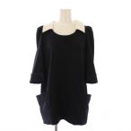【中古】フォクシー FOXEY ウールスクエアネックトップス ブラウス 半袖 黒 ブラック 白 ホワイト /AT ■OS レディース 【ベクトル 古着】 250730