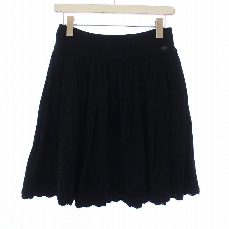 【中古】フォクシー FOXEY ニットスカート ギャザー フレア ミニ ロゴプレート 38 S 黒 ブラック /KU ■GY ▲H レディース 【ベクトル 古着】 241127