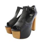 ジェフリーキャンベル フォクシー Tストラップ厚底サンダル オープントゥ チャンキーヒール レザー ウッド 37 黒 茶 FJF581 レディース