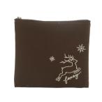 フォクシー FOXEY スクエアポーチ 茶 ブラウン トナカイ刺繍 雪の結晶刺繍 /AQ ■OS レディース