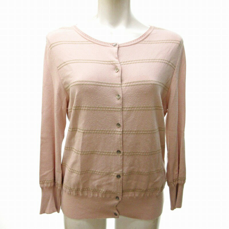 【中古】フォクシー FOXEY 35328 ボーダー ニット カーディガン 日本製 ピンク 42 約M 0627 IBO69 レディース 【ベクトル 古着】 250627