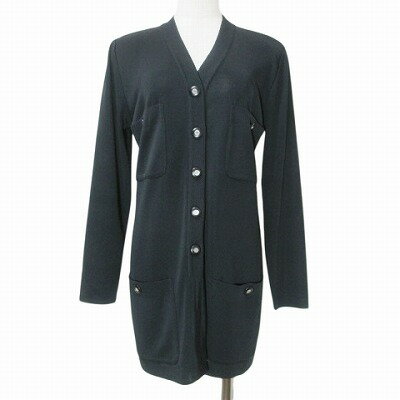 【中古】フォクシー ブティック FOXEY BOUTIQUE レーヨンニットカーディガン 6082 長袖 Vネック 4ポケット 黒 ブラック フリーサイズ X レディース 【ベクトル 古着】 250627