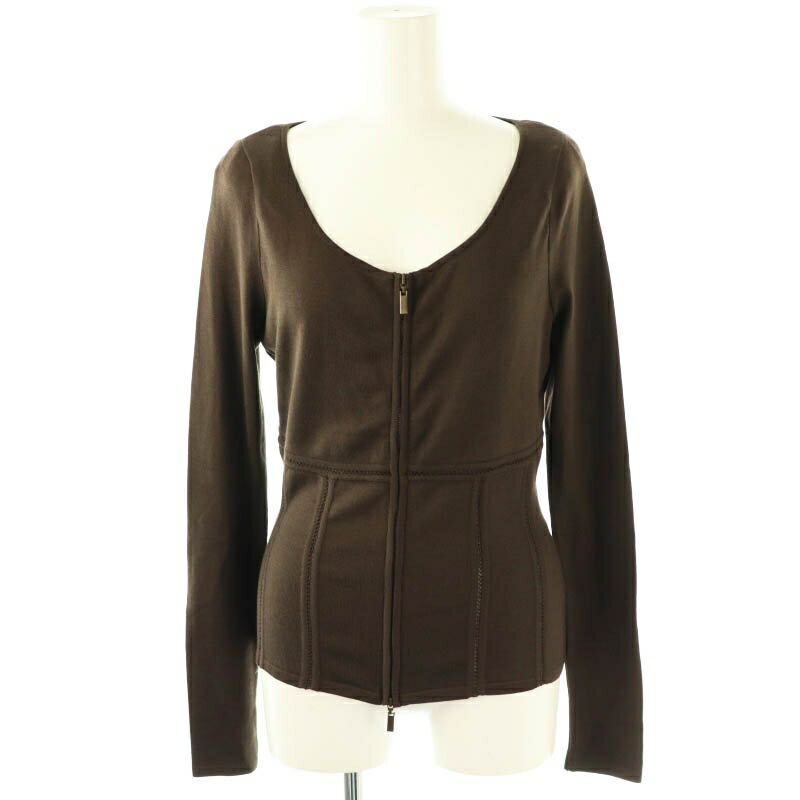 【中古】フォクシー ブティック FOXEY BOUTIQUE ジップアップニット カットソー 長袖 Vネック 40 茶 ブラウン /AT ■OS レディース 【ベクトル 古着】 250723