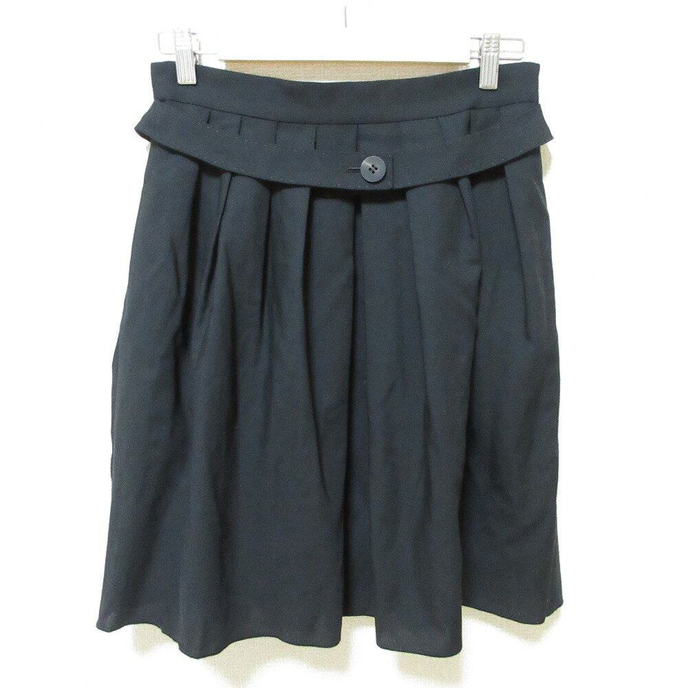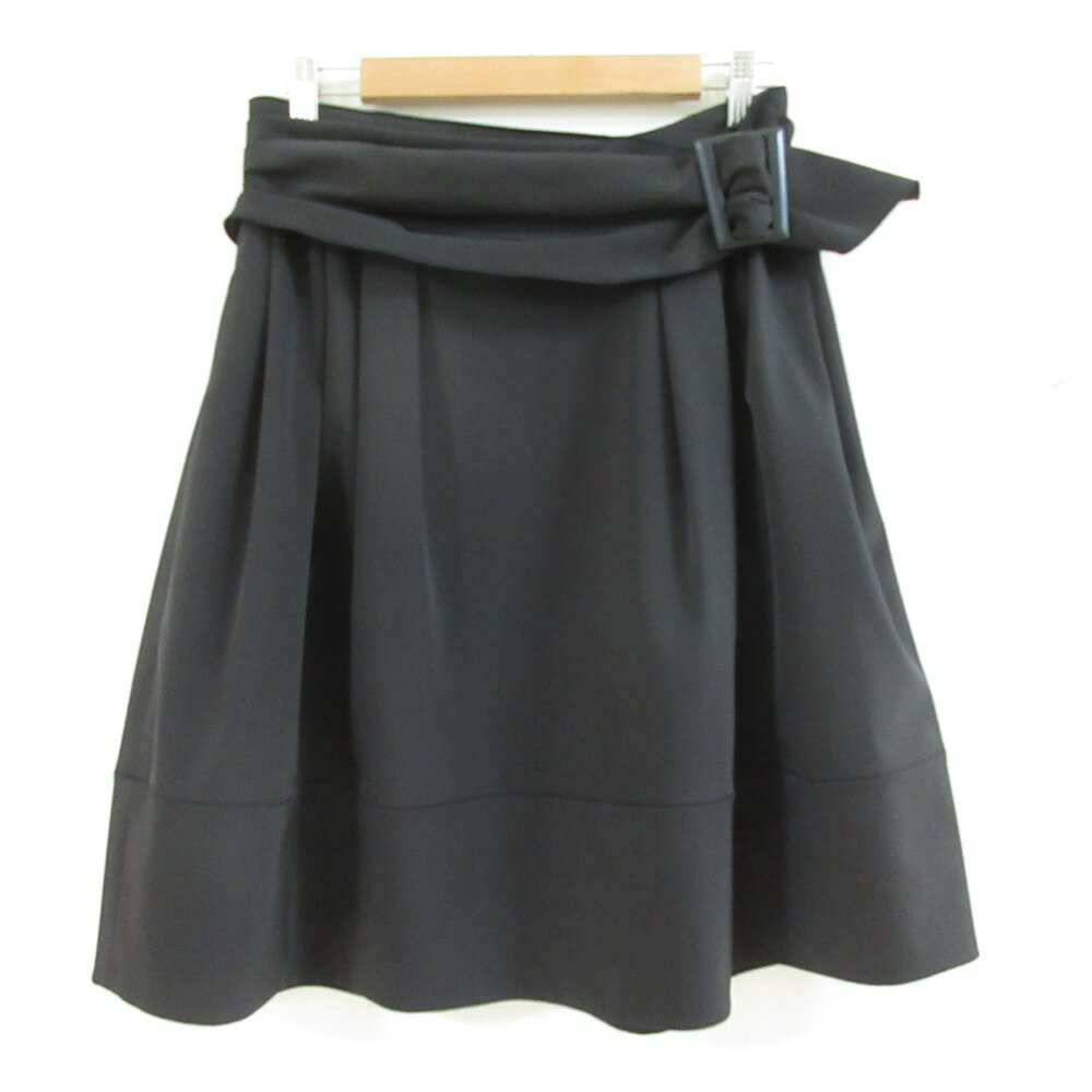 【楽天スーパーSALE20%OFF】【中古】美品 FOXEY フォクシー ベルトデザイン ひざ丈 タックフレア スカート 25877 42 ブラック レディース Luxs ブランド古着のリュクス