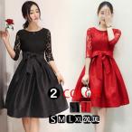 パーティードレス 膝丈ワンピース 総レース 七分袖 膝丈 フォーマルドレス お呼ばれワンピース 切り替え Aライン エレガント 結婚式入園式二次会謝恩会同窓会