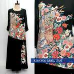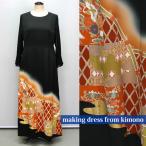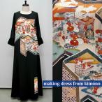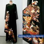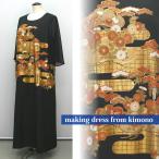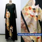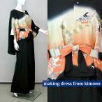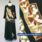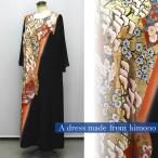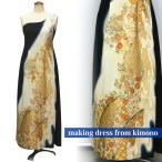 2086一点物の正絹帯と留袖のドレス【留袖ドレス 着物リメイクドレス 和ドレス 結婚式 参列 母親 親族 フォーマルドレス ワンピース 正絹 日本製 送料無料 9号】