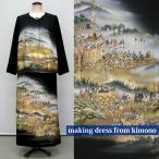 094一点物の正絹留袖ドレス【留袖ドレス 着物リメイクドレス 和ドレス 結婚式 参列 母親 親族 フォーマルドレス ワンピース 正絹 日本製 送料無料 11号】