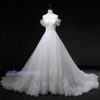 ウェディングドレス 花嫁 二次会 ホワイト ウエディングドレス 結婚式 ロング トレーン プリンセスライン ベルスリーブ 挙式 披露宴 ブライダル