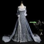 カラードレス グレー 花柄 ジャガード 半袖 演奏会 発表会 二次会 花嫁 ウエディングドレス ウェディングドレス ロングドレス Aラインドレス プリンセスドレス
