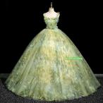 カラードレス ライトグリーン ノースリーブ フラワー 演奏会 発表会 二次会 花嫁 ウエディングドレス 妖精 ウェディングドレス ファンタジック プリンセスドレス