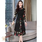 フォーマルワンピース 花柄 ワンピース 長袖 フォーマル パーティードレス 結婚式 お呼ばれドレス 袖あり 大きいサイズ 3L 4L 5L 黒 30代