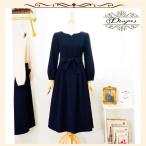 リボン ワンピース ネイビー フォーマルドレス レディース ドレス ミモレ丈 30代40代50代 ロングワンピース