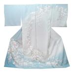 振袖 水色 友禅 仕立て付き 十日町有名染匠 新品 購入 販売 雲取り 霞 御所車 古典 正絹 フォーマル 着物 未仕立て 成人式 卒業式 絹 f-783