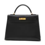 エルメス ケリー32 外縫い ボックスカーフ ブラック ゴールド金具 □E刻印