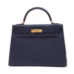 エルメス ケリー28 外縫い エプソン ブルーネイビー ゴールド金具 W刻印