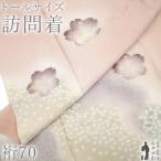 訪問着 着物 フォーマル リサイクル 正絹 金駒刺繍 珊瑚色 薄ピンク 桜 花 中古 仕立て上がり 身丈169 裄丈70 TLサイズ みやがわ sb17080