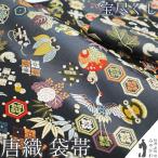 袋帯 フォーマル 未使用 唐織 正絹 全通 京都 西陣 金糸 黒グレー グレー 宝尽くし 鶴 松 竹 桐 新古品 仕立て上がり みやがわ sb54573