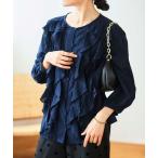 UNITED ARROWS green label relaxing フリル ディテール ブラウス マシンウォッシャブル UVカット ユナイテッドアローズ グリーンレーベルリラクシング トップス シャツ・ブラウス ブルー ネイビー ホワイト【送料無料】
