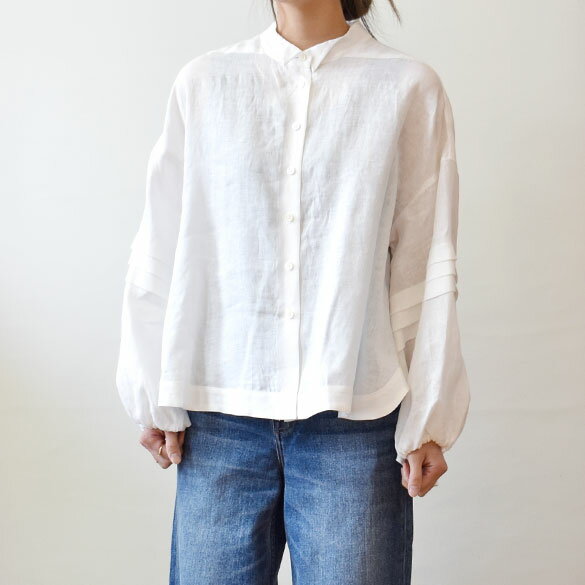 irise(イリゼ)ウイングカラー 袖タック リネンブラウス(ir038)(t9083)