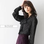 ブラウス シフォン ストールリボン ジェムストーンドット sh-c0002 シフォンブラウス ドット柄 薄手 レディース エレガント オフィス 長袖 大人