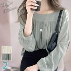 シフォン ブラウス シャツ オフィス ボリューム袖 スクエアネック ノーカラー 長袖 おしゃれ カジュアル ゆったり 薄手 母の日 プレゼント 可愛い 夏 レディース